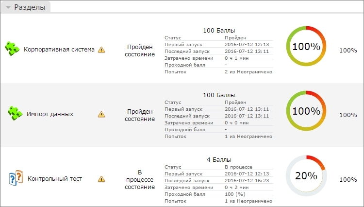 - отметка о завершении модуля,