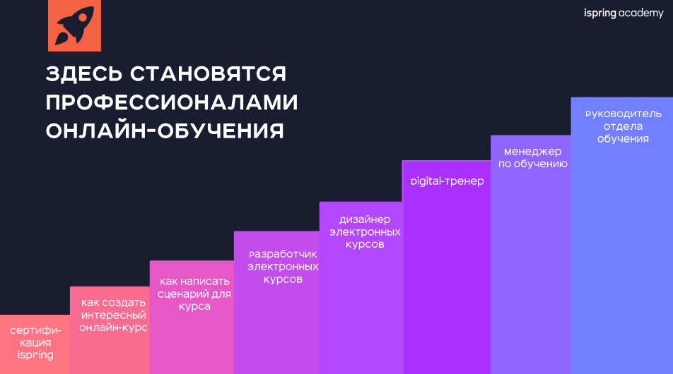 И вот с 2018 года, на протяжении 5 лет, Академия iSpring продолжает обучать разработчиков курсов и методистов, менеджеров и руководителей отделов обучения, а также проводит сертификацию по решениям iSpring.